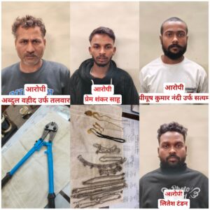 ऽ घटना मे प्रयुक्त 01 नग कटर, तीन पहिया आटो क्रमांक सीजी 04 एमएस 1464, चोरी के 03 मोटरसायकल भी बरामद किया गया है जिसकी तस्दीक किया जा रहा है।