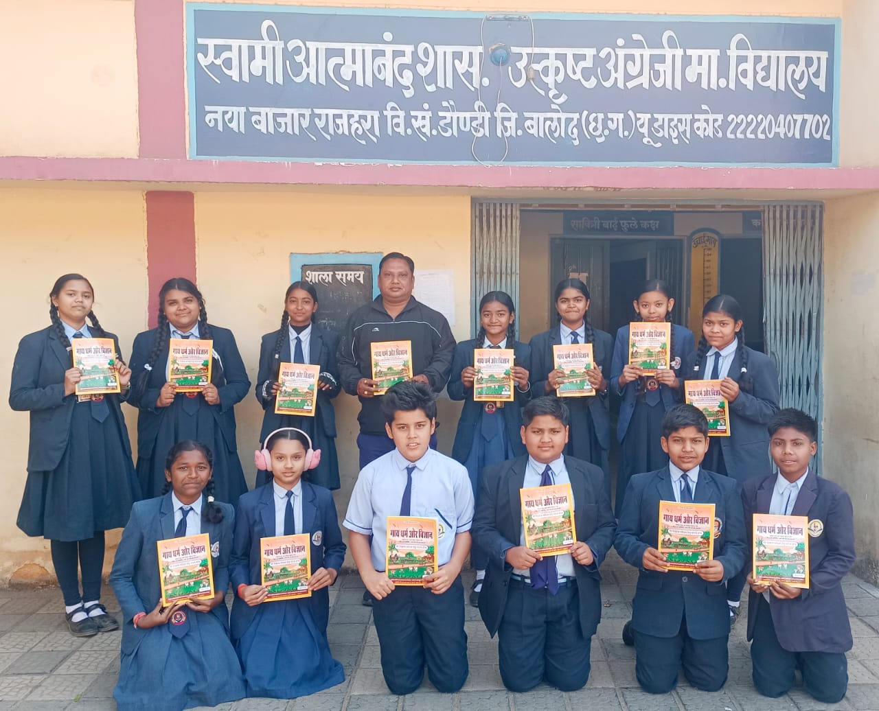 2025 एक अनूठी पहल है, जिसका उद्देश्य भारतीय गाय (गौ माता) के वैज्ञानिक, सांस्कृतिक एवं आर्थिक महत्व के प्रति जन-जागरूकता बढ़ाना है। जिसके अंतर्गत आज स्वामी आत्मानंद शासकीय उत्कृष्ट अंग्रेजी माध्यम विद्यालय, नया बाजार , राजहरा, जिला बालोद के 64 बच्चों को गौ विज्ञान परीक्षा 2025 हेतु शाला के अध्यक्ष रमेश गुजर के द्वारा बच्चों को पुस्तिका का वितरण किया गया।