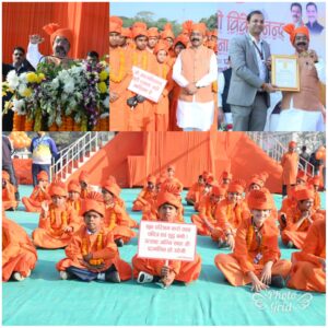 बिलासपुर। उप मुख्यमंत्री सह खेल मंत्री अरुण साव के मार्गदर्शन में आज स्वामी विवेकानंद जयंती राष्ट्रीय युवा महोत्सव पर बिलासपुर शहर ने इतिहास रचा है। खेल एवं युवा कल्याण विभाग द्वारा पुलिस ग्राउंड में आयोजित स्वामी विवेकानंद चेतना महोत्सव में 1500 बच्चों ने स्वामी विवेकानंद जी की वेशभूषा में सामूहिक रूप से पूर्ण वंदेमातरम का गायन किया। इस अवसर पर डिप्टी सीएम अरुण साव ने 1500 बच्चों को नशामुक्ति की शपथ दिलाई। और दूसरों को भी नशा के खिलाफ जागरूक करने का संकल्प लिया। अरुण साव ने इस विश्व रिकॉर्ड के लिए गोल्डन बुक ऑफ वर्ल्ड रिकॉर्ड का प्रमाण पत्र प्राप्त किया।