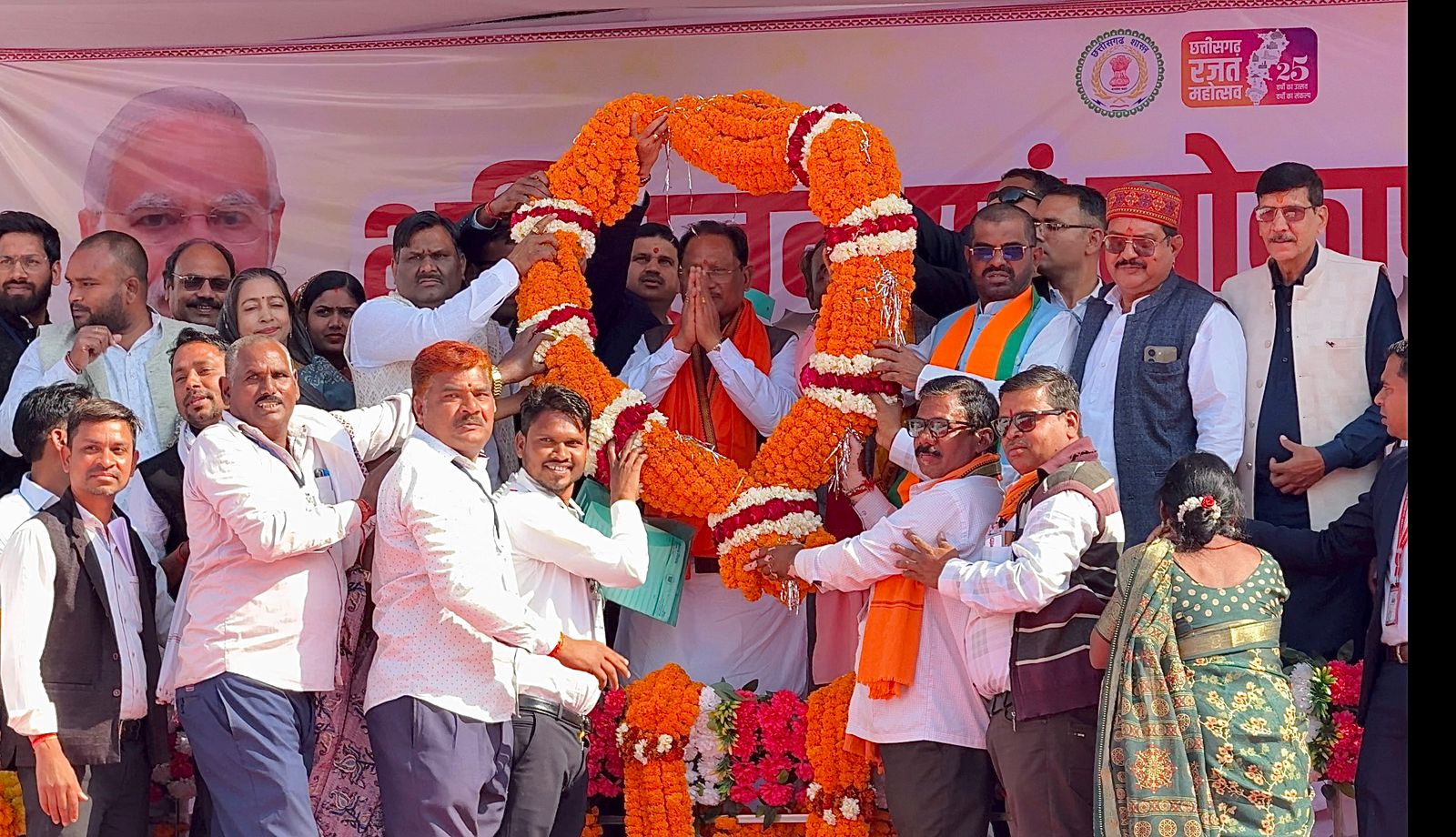हेलीपेड से आगमन होते ही मुख्यमंत्री को व्यापारी संघ द्वारा लड्डुओं से तौला गया। नगर पंचायत के सभी पार्षदों द्वारा मुख्यमंत्री का भव्य स्वागत किया गया ,सरपंच संघ ,युवा मोर्चा ,भाजपा मंडल पदाधिकारी ,जनपद अध्यक्ष और सदस्यों,जिला भाजपा के पदाधिकारी,साहू ,सोनकर ,सतनामी,निषाद,सर्वादिवासी समाज ,देवांगन ,कबीर पंथ साहू समाज,अधिवक्ता संघ,सचिव संघ,एवं महिला कमांडो एवं लगभग 300 लोगों ने मुख्यमंत्री जी का भव्य स्वागत किया गया।