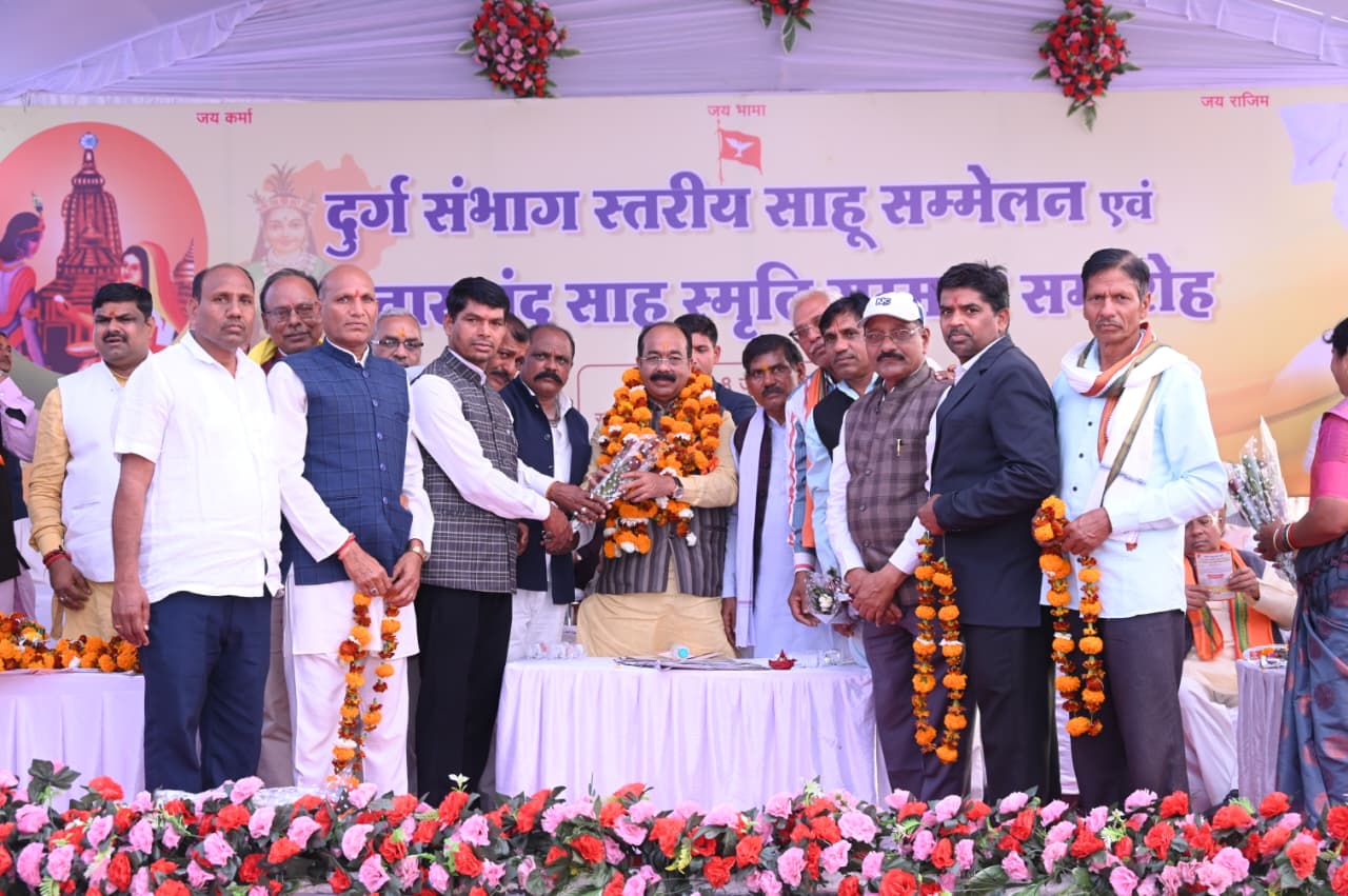 उप मुख्यमंत्री अरुण साव आज दुर्ग के रविशंकर मैदान में आयोजित संभाग स्तरीय साहू सम्मेलन एवं स्वर्गीय ताराचंद साहू स्मृति सम्मान समारोह में सम्मिलित होकर प्रदेश के विभिन्न समाज के समाजसेवियों का सम्मान किया। इस दौरान उन्होंने युवाओं को बताया कि, स्वर्गीय ताराचंद साहू जी गांव से संघर्ष करके लोकप्रियता के शिखर पर पहुंचे। उन्होंने अपने व्यवहार और अपने काम से जननेता के रूप में अपनी एक अलग पहचान बनाई। प्रदेश में वे एक कुशल जननेता, संगठनकर्ता एवं राजनेता के रूप में हमेशा याद किए जाएंगे।