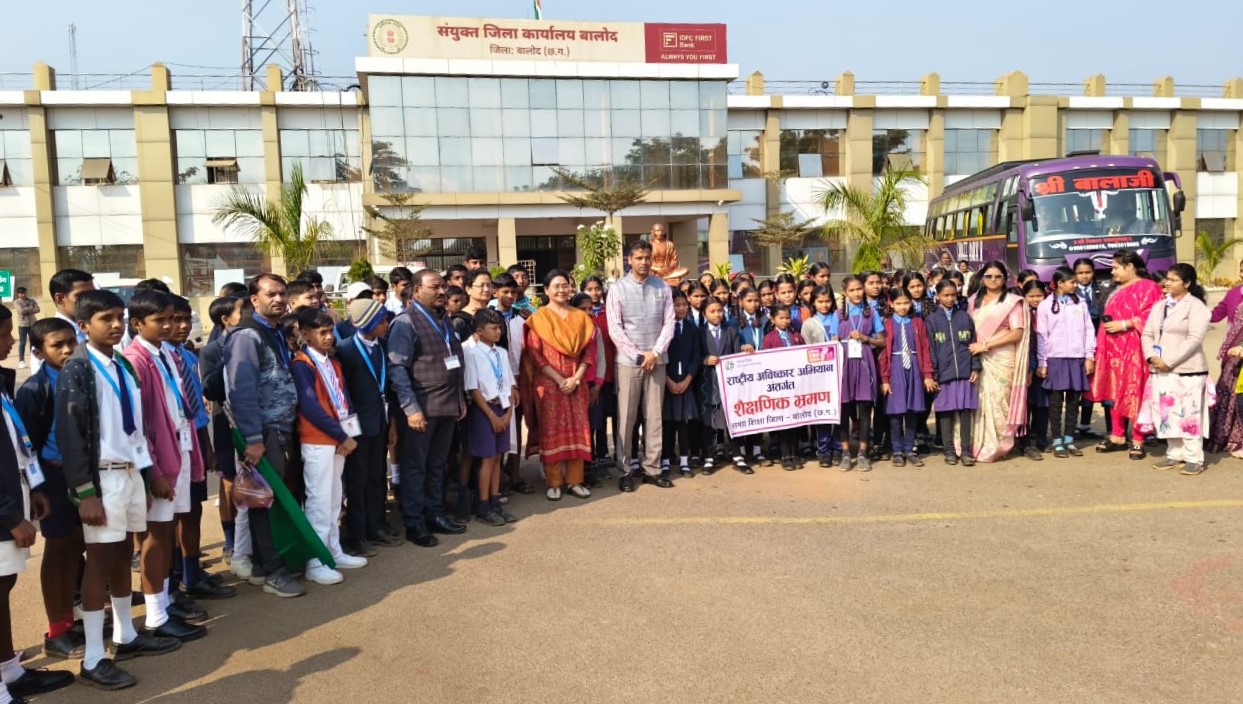 उन्हें हार्दिक बधाई एवं शुभकामनाएं दी। समग्र शिक्षा के जिला मिशन समन्वयक ने बताया कि राष्ट्रीय आविष्कार अभियान अंतर्गत इस शैक्षणिक भ्रमण कार्यक्रम के तहत बालोद टेक्नोफेस्ट में भाग लेने वाले जिले के कक्षा 6वीं से 8वीं तक के छात्र-छात्राएं आज इस्पात नगरी भिलाई में स्थित भारतीय प्रौद्योगिकी संस्थान, भारतीय विश्वविद्यालय, भिलाई स्टील प्लांट के मैत्री गार्डन का भ्रमण करेंगे। इस अवसर पर जिला पंचायत के मुख्य कार्यपालन अधिकारी सुनील चंद्रवंशी, जिला शिक्षा अधिकारी मधुलिका तिवारी, ए.पी.सी. समग्र शिक्षा सहित अधिकारी-कर्मचारी एवं शिक्षक-शिक्षिकागण उपस्थित थे।