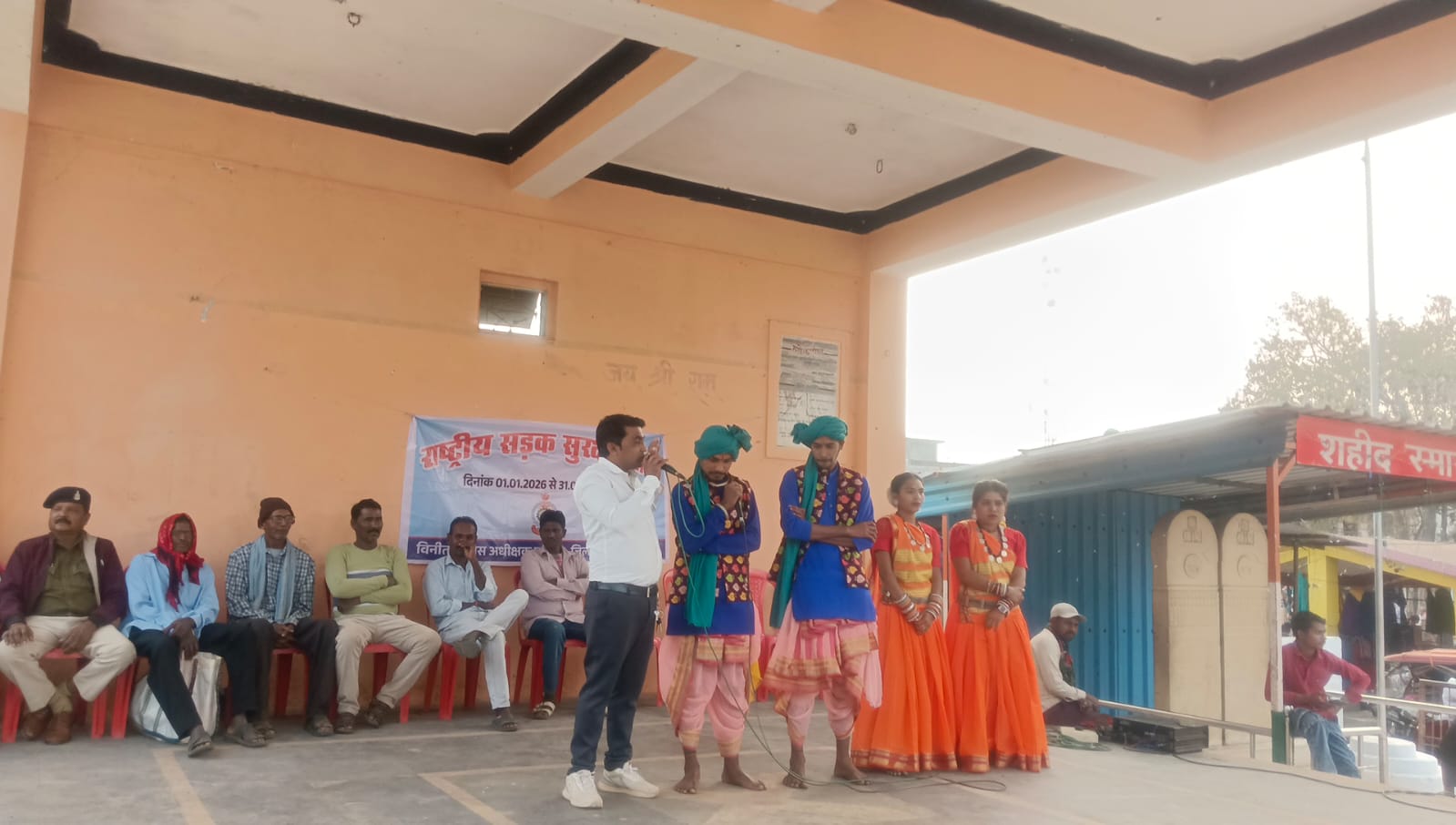इसी क्रम मे दिनांक 28.01.2026 को बालोद के साप्ताहिक बाजार में “बालोद के रंग” के कलाकारों के द्वारा पुलिस विभाग एवं लो.नि.वि. बालोद पूर्णिमा कौशिक कार्यपालन अभियंता बालोद के संयुक्त प्रयास से “सड़क सुरक्षा” विषय पर नुक्कड नाटक कार्यक्रम आयोजित किया गया जिसमें बड़ी संख्या में आम नागरिकों एवं साप्ताहिक बजार में आएं लोगों को यातायात नियमों के बारे में जानकारी दिया गया एवं यातायात नियमों का पालन करने पाम्पलेट वितरण कर हमेशा हेलमेट एवं सीट बेल्ट लगाकर वाहन चलाने हेतु जागरूक किया गया।