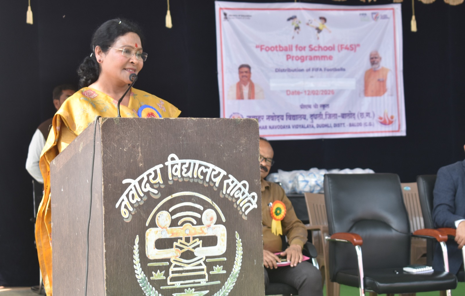 कलेक्टर दिव्या उमेश मिश्रा ने कहा कि जीवन में आगे बढ़ने के लिए पढ़ाई-लिखाई के साथ-साथ खेलकुद में भी भागीदारी अत्यंत आवश्यक है। उन्होंने कहा कि शिक्षा का उद्देश्य होता है, व्यक्तित्व का सर्वांगीण विकास इसके लिए मानसिक एवं बौद्धिक विकास के साथ-साथ शारीरिक रूप से फिट होना अत्यंत आवश्यक है। कलेक्टर श्रीमती मिश्रा आज पीएमश्री जवाहर नवोदय विद्यालय दुधली में इंटरनेशनल फेडरेशन ऑफ फुटबॉल एसोसिएशन (फीफा) द्वारा आयोजित फुटबाॅल फाॅर स्कूल प्रोग्राम के अवसर पर अपना उद्गार व्यक्त कर रही थीं। कलेक्टर मिश्रा कार्यक्रम में मुख्य अतिथि के रूप में उपस्थित थीं।