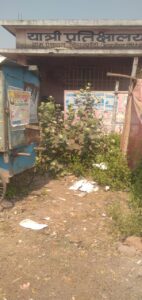 भवन के आसपास झाड़-झंखाड़ उग आया है और साफ-सफाई का अभाव स्पष्ट दिखाई देता है। प्रतीक्षालय के सामने अस्थायी ढांचा और अव्यवस्थित सामग्री होने से यात्रियों को बैठने और खड़े होने में भी परेशानी होती है। रखरखाव के अभाव में यह सार्वजनिक सुविधा केंद्र अपनी मूल उद्देश्य से भटकता नजर आ रहा है।