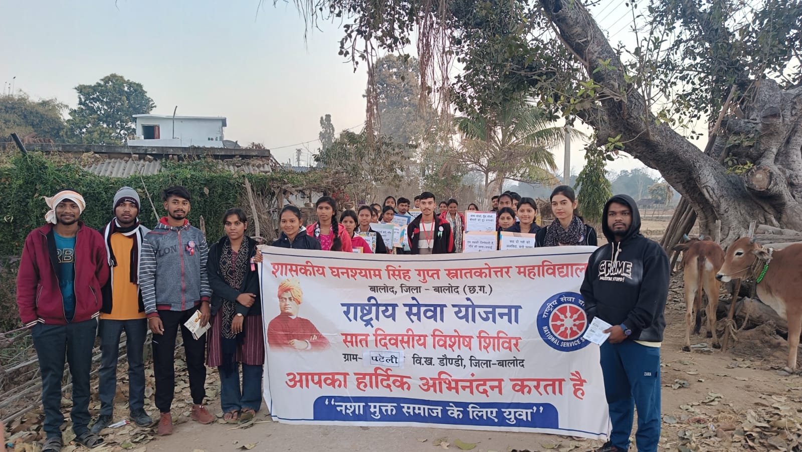 शासकीय महाविद्यालय बालोद की राष्ट्रीय सेवा योजना इकाई द्वारा ग्राम पटेली में दिनांक 16 फरवरी से 22 फरवरी 2026 तक “नशा मुक्त समाज के लिए युवा” थीम पर सात दिवसीय विशेष शिविर का सफल आयोजन किया गया। इस शिविर में 50 स्वयंसेवकों ने उत्साहपूर्वक भाग लेकर ग्रामवासियों के बीच विभिन्न सामाजिक, शैक्षणिक एवं जागरूकता गतिविधियों का प्रभावी संचालन किया।