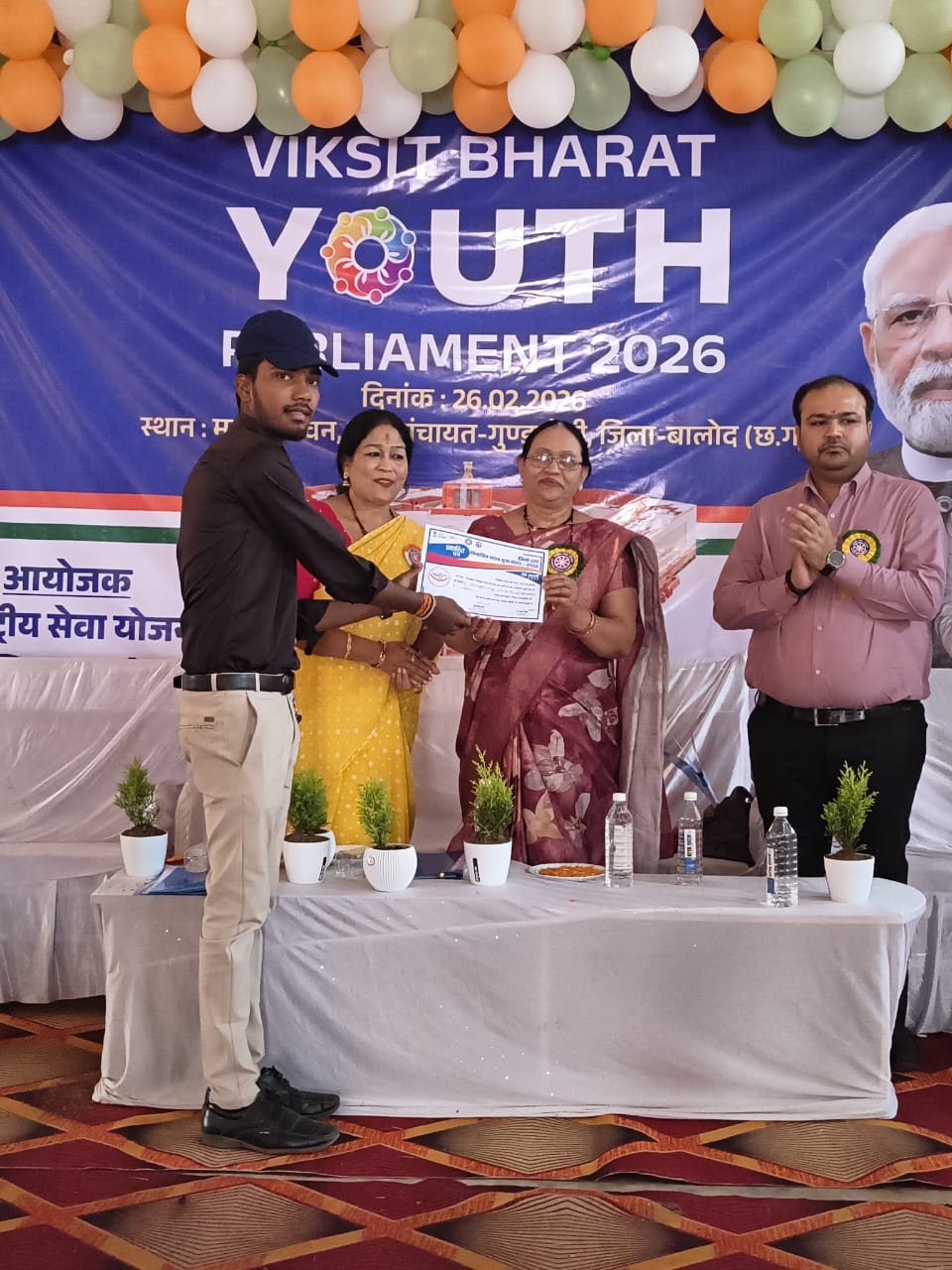 विकसित भारत यूथ पार्लियामेंट के अंतर्गत आयोजित जिला स्तरीय युवा संवाद कार्यक्रम जो कि नगर पंचायत गुंडरदेही में 26 फरवरी दिन गुरुवार को आयोजित हुआ जिसमें शासकीय घनश्याम सिंह गुप्त स्नातकोत्तर महाविद्यालय, बालोद के राष्ट्रीय सेवा योजना एवं एम.ए. चतुर्थ सेमेस्टर के छात्र लक्ष कुमार साहू ने उत्कृष्ट प्रदर्शन करते हुए द्वितीय स्थान प्राप्त कर महाविद्यालय एवं जिले का गौरव बढ़ाया है।
