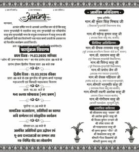वहीं द्वितीय दिवस 15 मार्च रविवार को संत शिरोमणि भक्त माता कर्मा की जयंती मनाई जाएगी। सुबह 10:30 बजे नगर में कलश शोभायात्रा निकाली जाएगी। 11:30 बजे तैलीक गरुड़ ध्वजारोहण, कवि सम्मेलन एवं सांस्कृतिक कार्यक्रम का आयोजन होगा। इसके साथ ही भू क्रय दानदाताओं का सम्मान एवं नवनिर्मित सेड का लोकार्पण किया जाएगा।