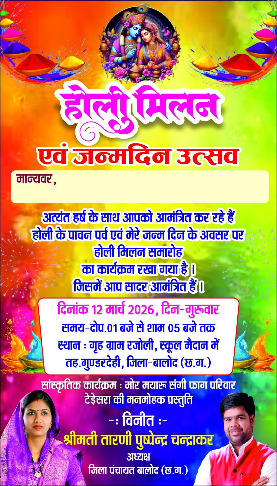 *बालोद :-* जिला पंचायत अध्यक्ष तारणी पुष्पेंद्र चंद्राकर ने अपना जन्मदिन एक अनूठे और प्रेरणादायक तरीके से मनाया। उन्होंने अपने गृह ग्राम रजौली के स्कूल में बच्चों के बीच पहुंचकर न्यौता भोज का आयोजन किया और नन्हे-मुन्ने बच्चों के साथ जमीन पर बैठकर भोजन किया। प्रधानमंत्री पोषण शक्ति योजना के तहत न्यौता भोज की अवधारणा को आगे बढ़ाते हुए चंद्राकर ने अपने गांव के शासकीय प्राथमिक एवं माध्यमिक विद्यालय के बच्चों के साथ संयुक्त रूप से इस विशेष भोज का आयोजन किया। इस पहल का मुख्य उद्देश्य बच्चों में पोषण के प्रति जागरूकता फैलाना और समुदाय को स्कूलों से जोड़ना है। ![]()