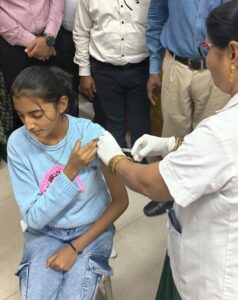 कलेक्टर दिव्या उमेश मिश्रा के निर्देशनुसार तथा मुख्य चिकित्सा एवं स्वास्थ्य अधिकारी डा. जे. एल. उइके के मार्गदर्शन में आज सर्विकल कैंसर के विरूद्ध राष्ट्रीय एचपीव्ही टीकाकरण अभियान का जिला स्तरीय शुभारंभ किया गया। मुख्य चिकित्सा एवं स्वास्थ्य अधिकारी ने बताया कि जिला चिकित्सालय स्थित मातृ एवं शिशु अस्पताल में 14 वर्षीय बालिका रिया देवदास एवं गार्गी देशमुख को एचपीव्ही वैक्सीन से टीकाकृत कर जिले में सर्विकल कैंसर के विरूद्ध राष्ट्रीय एचपीव्ही टीकाकरण अभियान की शुरूआत की गई।