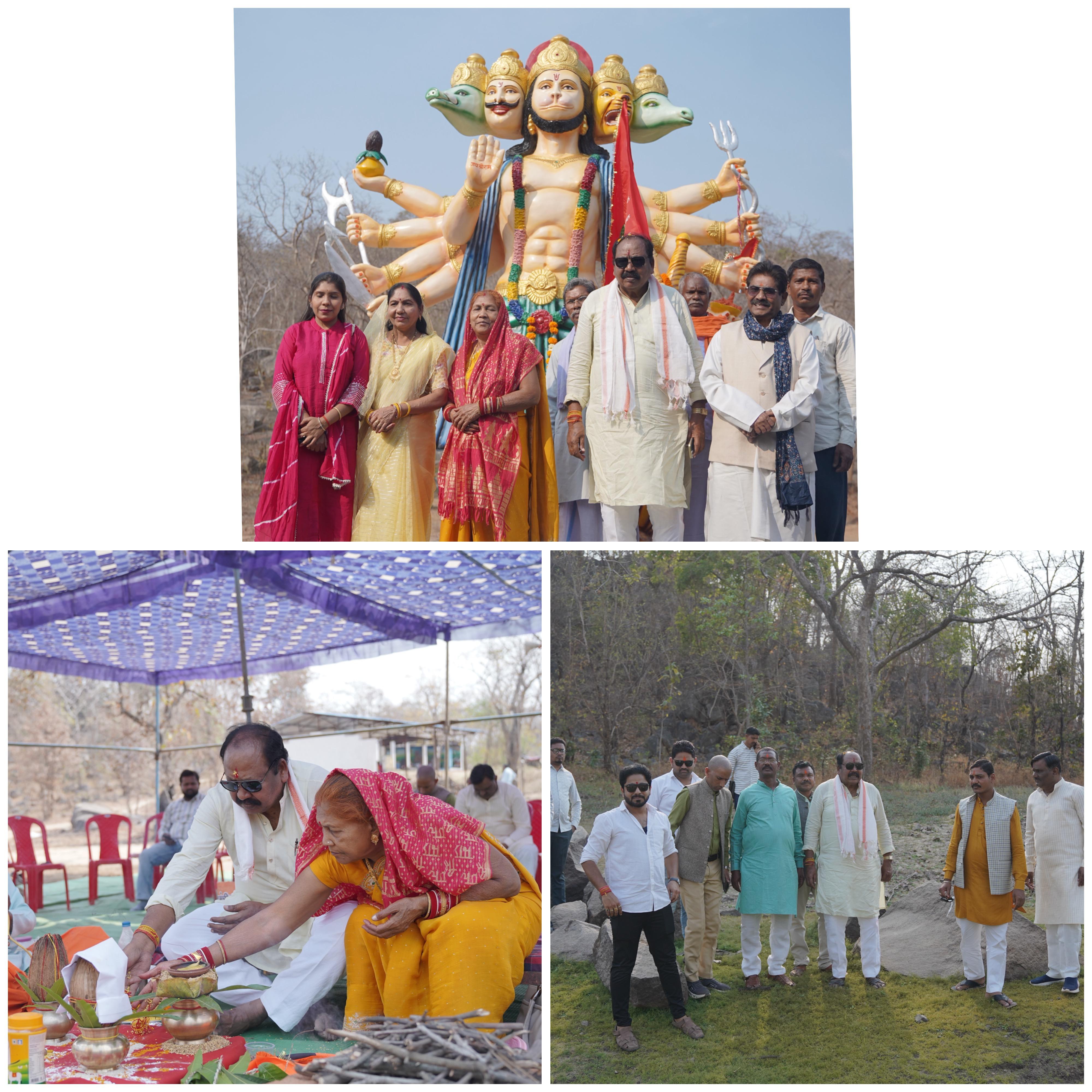 *रामायणी सांसद के नाम से सुशोभित, गोंडवाना समाज के राष्ट्रीय उपाध्यक्ष एवं कांकेर लोकसभा क्षेत्र के लोकप्रिय पूर्व सांसद मोहन मंडावी के गृह ग्राम गोटीटोला के पहाड़ पर चैत्र नवरात्रि के प्रथम दिवस, दिनांक 19 मार्च 2026, गुरुवार को पंचमुखी हनुमान जी की नवनिर्मित विशाल मूर्ति का विधिवत विग्रह एवं प्राण प्रतिष्ठा कार्यक्रम भव्य रूप से आयोजित किया गया।*