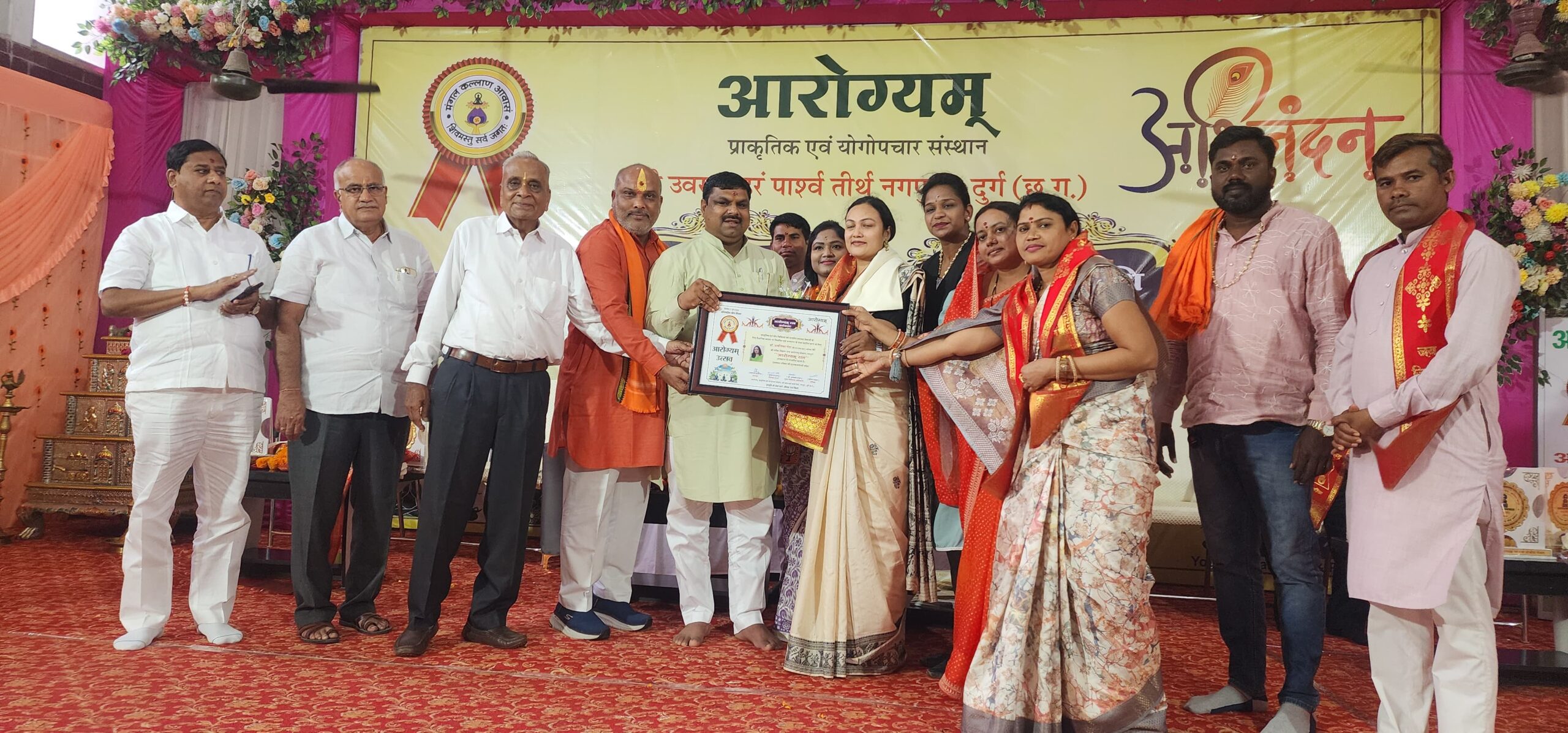 बालोद//दुर्ग ग्रामीण विधानसभा क्षेत्र के ग्राम नगपुरा में स्थित प्राकृतिक एवं योगोपचार संस्थान उवसग्गहरं पार्श्व तीर्थ नगपुरा में आरोग्यम उत्सव, आरोग्यम रत्न अलंकरण एवं जनप्रतिनिधि सम्मान समारोह का आयोजन किया गया। इस कार्यक्रम में मुख्य अतिथि के रूप में दुर्ग ग्रामीण विधायक व राज्य ग्रामीण एवं अन्य पिछड़ा वर्ग क्षेत्र विकास प्राधिकरण उपाध्यक्ष ललित चंद्राकर अध्यक्षता दुर्ग शहर विधायक गजेंद्र यादव विशेष अतिथि, जिला पंचायत अध्यक्ष सरस्वती बंजारे , जनपद पंचायत अध्यक्ष कुलेश्वरी देवांगन , जिला पंचायत सदस्य प्रिया साहू , मंडल अध्यक्ष हेमंत सिन्हा, पूर्व मंडल अध्यक्ष गिरेश साहू सरपंच संघ अध्यक्ष ओमेश्वर (राजू) यादव और सरपंच ग्राम पंचायत नगपुरा सरोज रिगरी सम्मिलित हुए।