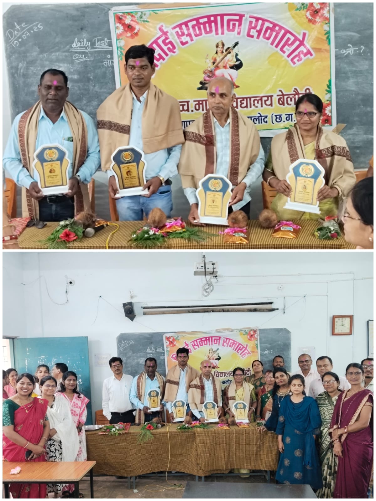 इस कार्यक्रम में नीता साहू शिक्षक जो कि पूर्व माध्यमिक शाला में वर्ष 2008 से 2025 तक 17 वर्ष छबिलदास साहू शिक्षक जो कि पूर्व माध्यमिक शाला में 2019 से 2025 तक 6 वर्ष महावीर कुर्रे शिक्षक पूर्व माध्यमिक शाला में 2023 से 2025 तक 2 वर्ष तथा अरुण ठाकुर सहायक शिक्षक जो कि 2014 से 2025 तक 11 वर्ष प्राथमिक शाला बेलोदी में सेवा दिए हैँ।