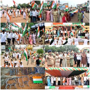 उल्लेखनीय है कि आजादी के अमृत महोत्सव पर ’हर घर तिंरगा, हर घर स्वच्छता’ की थीम पर आयोजित इस तिरंगा यात्रा के अवसर पर सरदार वल्लभ भाई पटेल मैदान में मानव श्रृंखला के माध्यम से हर घर तिंरगा के आकृति का भी निर्माण किया गया था।