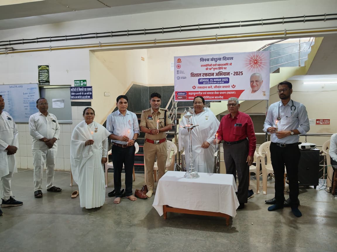 बालोद। प्रजापिता ब्रह्माकुमारी ईश्वरीय विश्व विद्यालय आत्मज्ञान भवन आमापारा बालोद के तत्वाधान में दिनांक 25 अगस्त को प्रातः 10 बजे से 4 बजे तक रक्तदान कैंप शासकीय जिला अस्पताल बालोद में किया गया। संस्थान की पूर्व मुख्य प्रशासिका राजयोगिनी दादी प्रकाशमणि की 18 वीं पुण्यतिथि 25 अगस्त को विश्व बंधुत्व दिवस के अवसर पर संस्थान द्वारा भारत और नेपाल में रक्तदान महाअभियान चलाकर गिनीज ऑफ वर्ल्ड रिकॉर्ड बनाया जाएगा। इस अभियान के अंतर्गत देशभर के छह हजार से अधिक सेवाकेन्द्रों से एक लाख यूनिट रक्तदान एकत्रित कर विश्व रिकॉर्ड बनाने का लक्ष्य है।