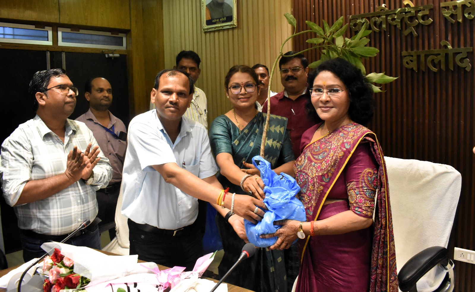 इस अवसर पर संयुक्त जिला कार्यालय सभाकक्ष में उपस्थित अधिकारी-कर्मचारियों ने भी इन दोनों शिक्षकों के कार्यकुशलता की सराहना करते हुए उन्हें बधाई एवं शुभकामनाएं प्रेषित की। इस दौरान राज्यपाल पुरस्कार हेतु चयनित दोनों शिक्षकों के द्वारा कलेक्टर दिव्या उमेश मिश्रा को उनके जन्मदिन के अवसर पर पौधा भेंटकर उन्हें बधाई एवं शुभकामनाएं दी। इस मौके पर जिला पंचायत के मुख्य कार्यपालन अधिकारी सुनील चंद्रवंशी, अपर कलेक्टर चंद्रकांत कौशिक, अजय किशोर लकरा एवं नूतन कंवर के अलावा डीएमसी अनुराग त्रिवेदी सहित अन्य अधिकारीगण उपस्थित थे।