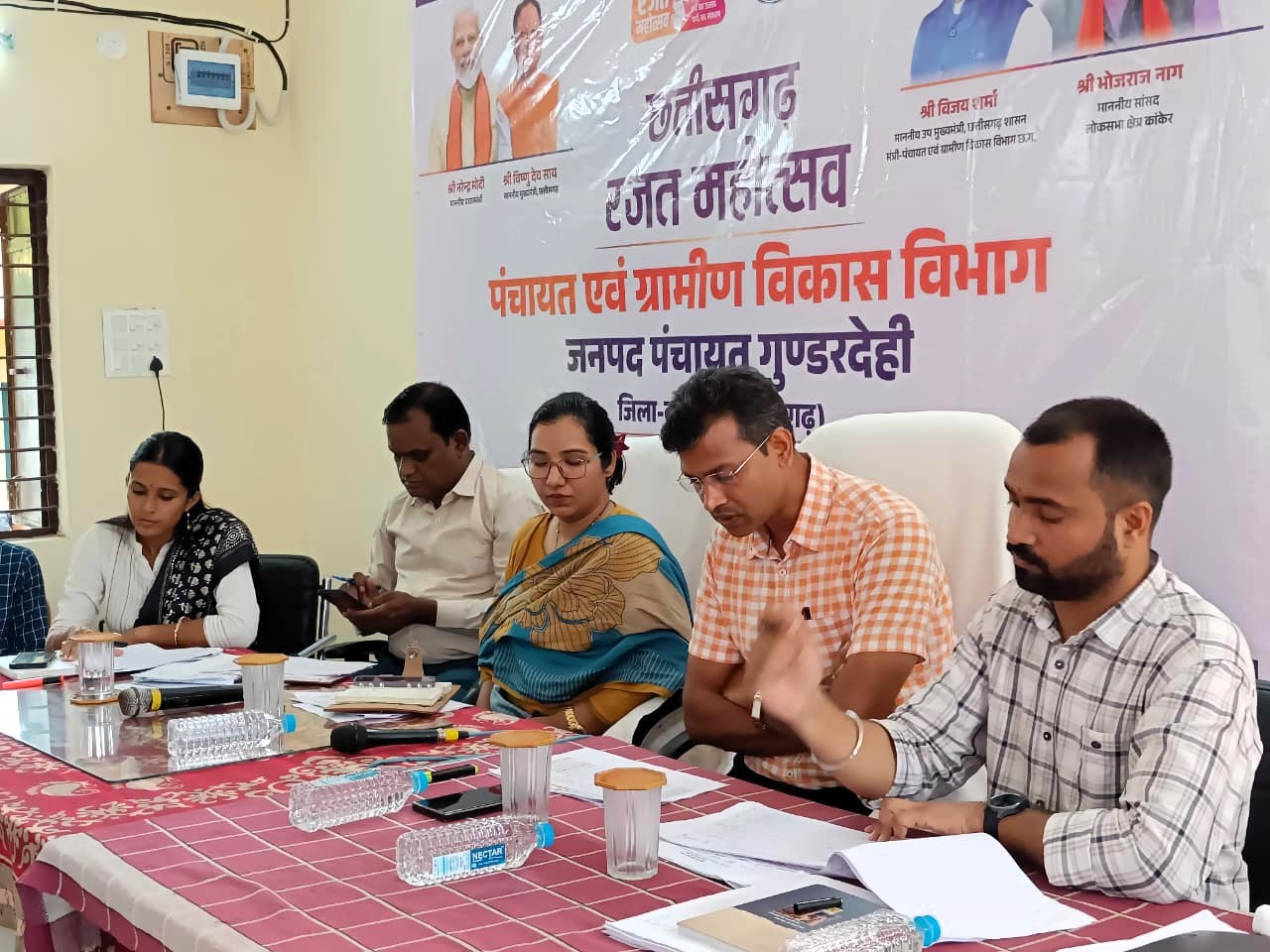 जिला पंचायत के मुख्य कार्यपालन अधिकारी सुनील चंद्रवंशी ने जनपद पंचायत गुण्डरदेही के सभाकक्ष में ग्राम पंचायत सचिवों एवं नोडल अधिकारियों की समीक्षा बैठक ली। समीक्षा बैठक में उन्होंने गुण्डरदेही विकासखण्ड में प्रधानमंत्री आवास योजना ग्रामीण के कार्यों की प्रगति की विस्तृत समीक्षा की। बैठक में चंद्रवंशी ने सभी अधिकारी-कर्मचारियों को प्रधानमंत्री आवास योजना ग्रामीण के कार्यों को निर्धारित समयावधि में गुणवत्तायुक्त ढंग से पूरा कराने तथा निर्माणाधीन कार्यों की सतत माॅनिटरिंग करने के निर्देश दिए।