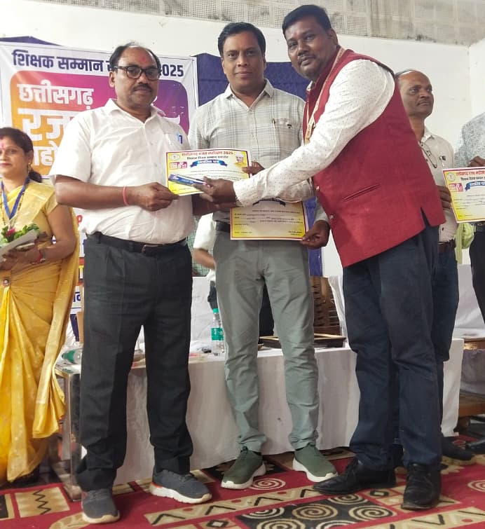 जिसमे प्राथमिक शाला खम्हारटोला 02नयाबाजार राजहरा संकुल से राजमल जैन,प्राथमिक शाला केराबारी क्रमांक o1 पुराना बाजार राजहरा से संगीता भंडारी,प्राथमिक शाला साल्हे संकुल साल्हे से राजकुमार सिंह,प्राथमिक शाला धोतीमटोला बसंत खरे,प्राथमिक शाला दारूटोला से लीलाधर ठाकुर,एवं प्राथमिक शाला जमरूवा से सीमा दामले,प्राथमिक शाला पटेली से बसंतमणी साहू आदि शिक्षकों को उनके उत्कृष्ट कार्य हेतु जिलाधीश दिव्या उमेश मिश्रा द्वारा सम्मानित करते हुए उनको उज्जवल भविष्य की सुभकामनाये प्रदान की!