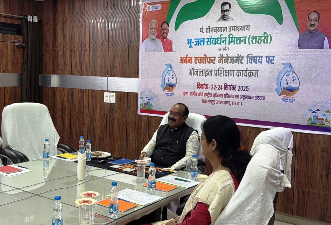रायपुर. 23 सितम्बर 2025. नगरीय प्रशासन एवं विकास विभाग ने पं. दीनदयाल उपाध्याय भू-जल संवर्धन मिशन (शहरी) के तहत नगरीय निकायों में भू-जल के संचय, संवर्धन और रिचार्ज के लिए मिशन मोड पर कार्य करने की तैयारी शुरू कर दी है। विभाग ने नवा रायपुर स्थित राजीव गांधी राष्ट्रीय भूमिजल प्रशिक्षण एवं अनुसंधान संस्थान के साथ मिलकर सभी नगरीय निकायों के लिए तीन दिवसीय गहन ऑनलाइन प्रशिक्षण आयोजित किया है।