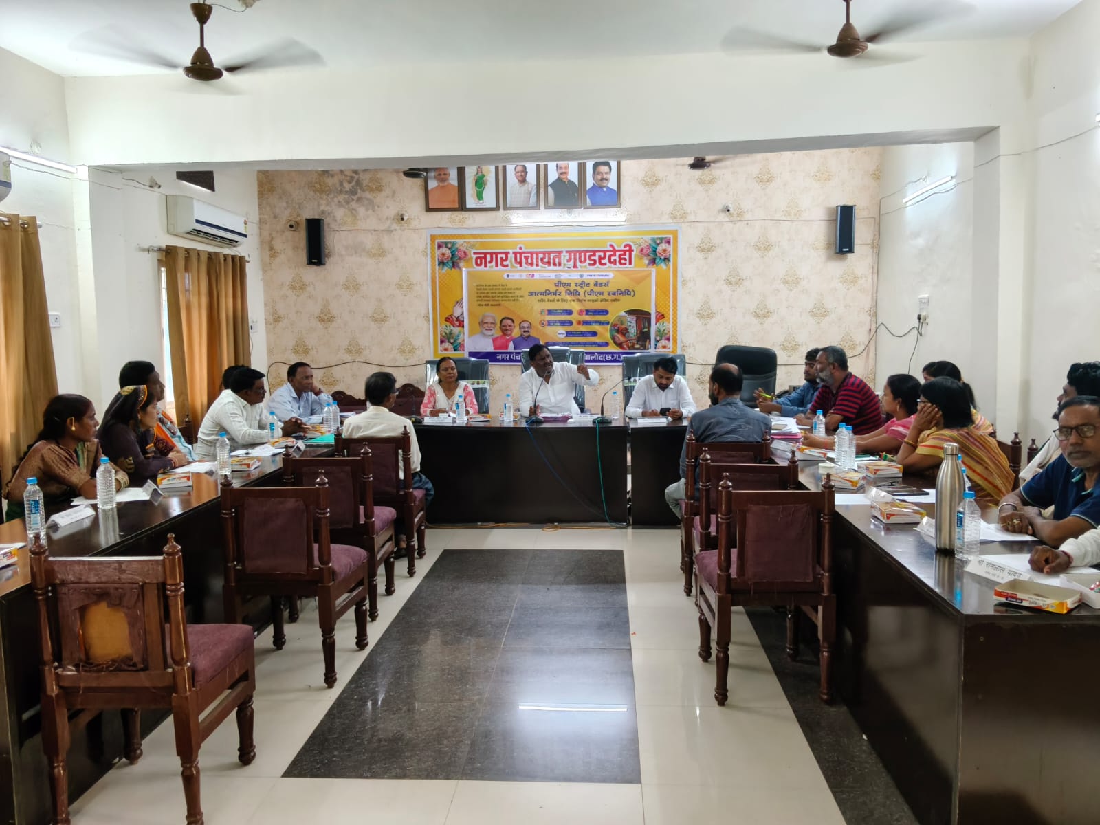 नगर पंचायत गुंडरदेही के अध्यक्ष प्रमोद जैन की अध्यक्षता में आज दिनांक 26/09/2025 को सुबह 11 बजे से परिषद की एक महत्वपूर्ण सामान्य बैठक आयोजित की गई। इस बैठक में जन कल्याण और नगर विकास से जुड़े 12 महत्वपूर्ण एजेंडा विषयों पर विचार-विमर्श कर निर्णय लिए गए। बैठक में उपाध्यक्ष विजय सोनकर, मुख्य नगर पालिका अधिकारी (सीएमओ) किरण पटेल, सब इंजीनियर रूपेश राठिया सहित सभी पार्षदगण और नगर पंचायत के अधिकारी-कर्मचारी उपस्थित रहे।