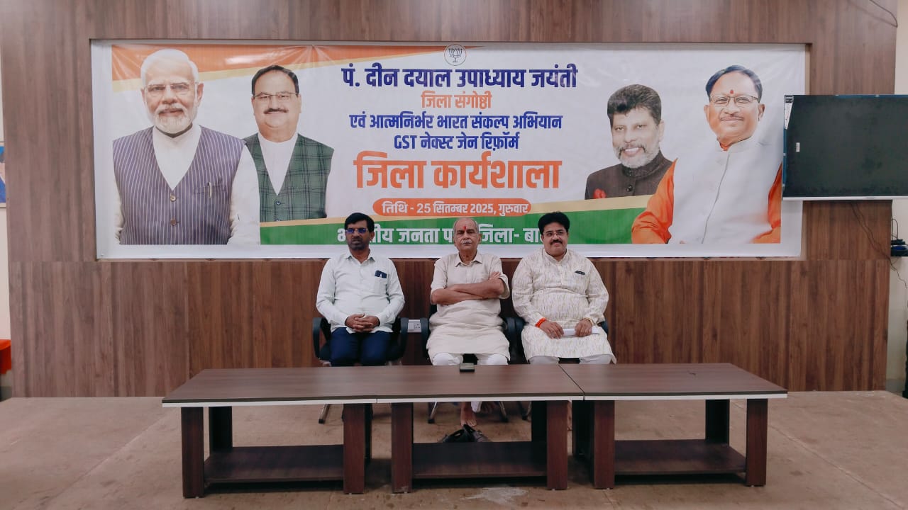 आज भारतीय जनता पार्टी जिला कार्यशाला में पंडित दीनदयाल उपाध्याय जयंती पर संगोष्ठी एवं आत्मनिर्भर भारत संकल्प अभियान और जीएसटी नेक्स्ट जेन रिफॉर्म पर जिला कार्यशाला का कार्यक्रम रखा गया।