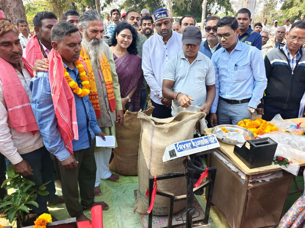 छत्तीसगढ़ सरकार द्वारा समर्थन मूल्य पर धान खरीदी का आज बालोद जिले के धान उपार्जन केंद्र कुसुमकसा में विधिवत रूप से शुभारंभ कर दिया गया है। सांसद श्री भोजराज नाग ने उपार्जन केंद्र कुसुमकसा पहुंचकर किसानों का फूलमाला व गमछा पहनाकर स्वागत किया। जिसके पश्चात छत्तीसगढ़ महतारी की विधिवत पूजा कर धान खरीदी कार्य का शुभारंभ किया गया। इस अवसर पर कलेक्टर श्रीमती दिव्या उमेश मिश्रा, सीईओ जिला पंचायत सुनील चंद्रवंशी सहित अन्य संबंधित अधिकारी और बड़ी संख्या में किसान मौजूद थे।