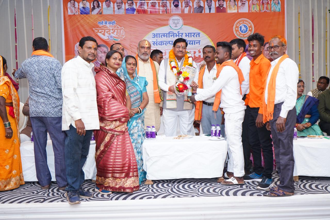 भारतीय जनता पार्टी के केंद्रीय नेतृत्व एवं प्रदेश नेतृत्व के द्वारा आत्मनिर्भर भारत संकल्प अभियान कार्यक्रम के अंतर्गत दुर्ग ग्रामीण विधानसभा स्तरीय कार्यकर्ता सम्मेलन का आयोजन दुर्ग गुंडरदेही मार्ग में स्थित 36 फोर्ट में छत्तीसगढ़ शासन के कैबिनेट मंत्री दयाल दास बघेल की मुख्य उपस्थिति में संपन्न हुई आयोजित बैठक में जिला भाजपा अध्यक्ष सुरेंद्र दुर्ग ग्रामीण विधायक ललित चंद्राकर, प्रदेश कार्य समिति सदस्य उषा टावरी,चंद्रिका चंद्राकर ,जिला महामंत्री विनोद अरोरा, जिला उपाध्यक्ष शिवेंद्र परिहार ,मनोज सोनी ,अशोक राठी ,सरिता मिश्रा, राजीव पांडेय,मंत्री गायत्री वर्मा, शैलेंद्र शैंडे, गिरेश साहू, वरिष्ठ भाजपा नेता प्रितपाल बेलचंदन,मंडल भाजपा अध्यक्ष हेमंत सिन्हा, अनुपम साहू,राजु जंघेल, लिकेश्वर देशमुख, शीतला ठाकुर, जिला पंचायत सदस्य श्रद्धा साहू उदय नगर पंचायत अध्यक्ष सरस्वती साहू उपस्थित रहे || आयोजित आत्मनिर्भर भारत कार्यकर्ता सम्मेलन में उपस्थित वरिष्ठ के द्वारा प्रधानमंत्री नरेंद्र मोदी के विकसित भारत 2047 और आत्मनिर्भर भारत संकल्प को पूर्ण करने के लिए जुटने का आह्वान किया | कार्यक्रम का समापन के पूर्व स्वदेशी वस्तु अपने का संकल्प दिलाया गया तथा वंदे मातरम गीत का सामूहिक गायन किया गया |