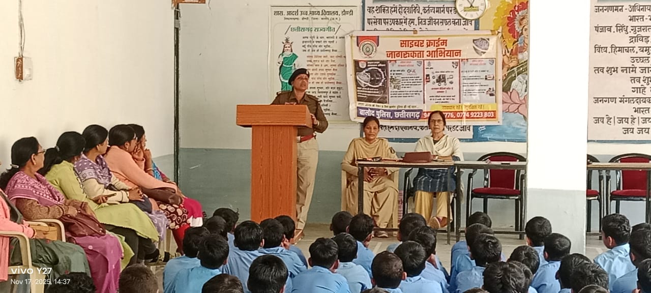 उसी क्रम में आज सीएसपी डॉ. चित्रा वर्मा के नेतृत्व में शासकीय आदर्श उच्चतर माध्यमिक विद्यालय, डौंडी में साइबर अपराध, बाल सुरक्षा, नशामुक्ति एवं यातायात नियमों पर जागरूकता कार्यक्रम आयोजित किया गया।