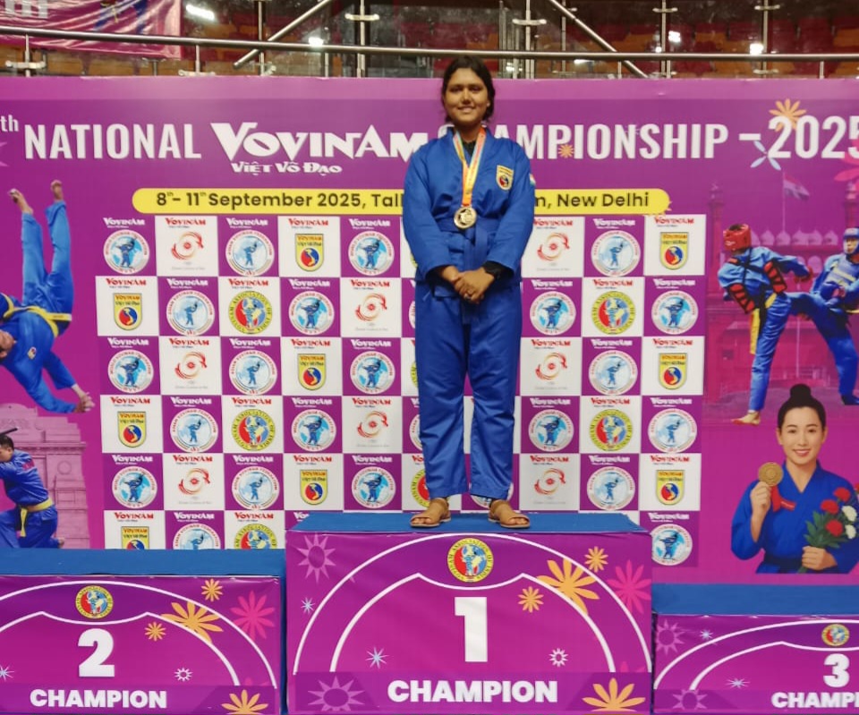 वोविनाम एसोसिएशन ऑफ़ इंडिया के तत्वाधान में 14वी वोविनाम नेशनल चैंपियनशिप 2025 का आयोजन तालकटोरा इनडोर स्टेडियम नई दिल्ली में 8 सितंबर में 11 सितंबर को आयोजित किया गया था। जिसमें बालोद जिला के नगर पंचायत अर्जुन्दा निवासी छगनलाल माहेश्वरी की पुत्री कुमारी मेघा माहेश्वरी को गोल्ड मेडल प्राप्त हुआ है।मेघा की कड़ी मेहनत व उनकी लगातार अभ्यास के कारण नेशनल चेम्पियनशिप में स्वर्ण पदक हासिल हुआ ।मेघा माहेश्वरी ने स्वर्ण पदक मिलने पर कहा कि यह पदक मेरे माता-पिता व परिवार के सहयोग एवँ लगातार अभ्यास से संभव हो पाया और आगे भी अपनी अभ्यास जारी रखूंगी।मेघा को स्वर्ण पदक मिलने से उनके परिवार,समाज सहित सहित नगरवासियों में हर्ष का माहौल है,सभी ने मेघा को बधाई व शुभकामनाएं प्रेषित किये है।