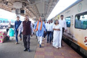 मुख्यमंत्री तीर्थ योजना अन्तर्गत आज दुर्ग रेलवे स्टेशन से अयोध्या धाम के दर्शन हेतु रवाना होने वाली विशेष श्रद्धालु ट्रेन को जनप्रतिनिधियों ने हरि झंडी दिखाकर विधिवत रवाना किया।सभी श्रद्धालुओं को यात्रा की हार्दिक शुभकामनाएं दी यह आयोजन आस्था, भक्ति और उत्साह से परिपूर्ण एक ऐतिहासिक क्षण बना, जिसमें भारी संख्या में श्रद्धालुजन अयोध्या दर्शन के लिए भावविभोर होकर इस विशेष यात्रा में शामिल हुए।